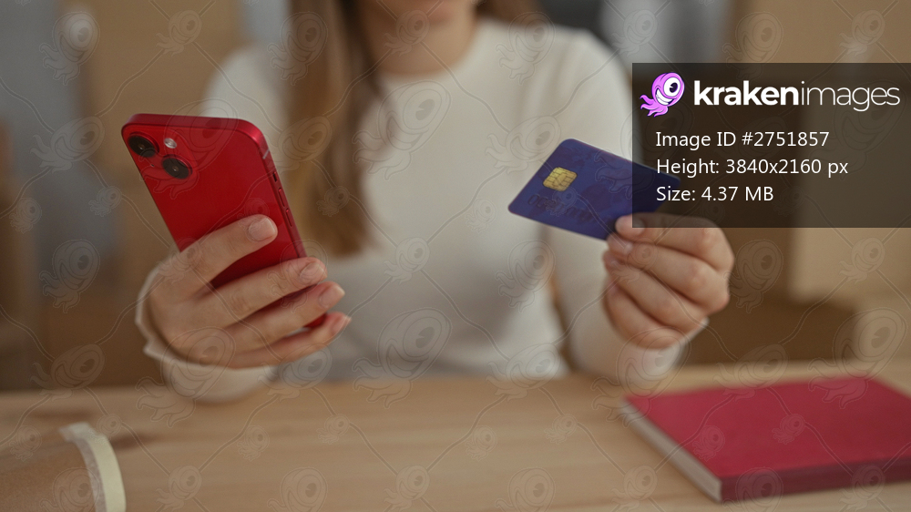 Woman holding smartphone and credit card in new home interior surrounded by unpacked boxes indicates online shopping and moving process