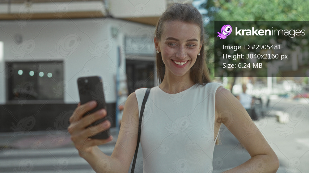 Woman holding smartphone and making peace sign while blowing a kiss on a sunlit street; joyful connection.