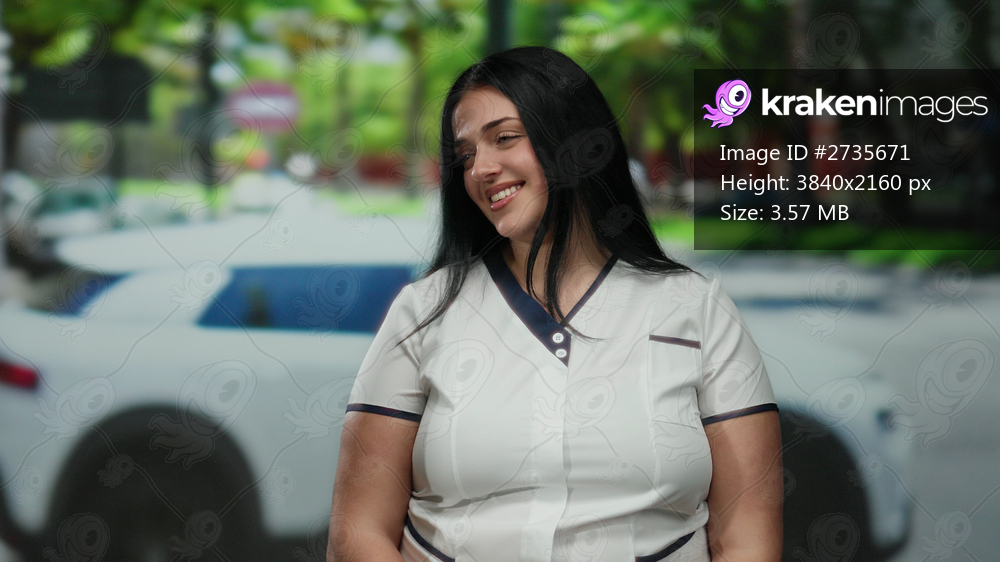 Woman in a city street, smiling confidently, with motorcycles and cars surrounding, demonstrating a vibrant outdoor urban lifestyle.