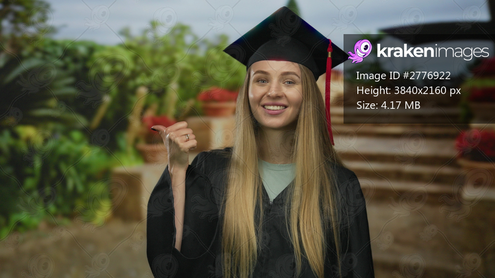 Woman in graduation gown smiling in park setting showcasing achievement in outdoor environment during a celebration day.