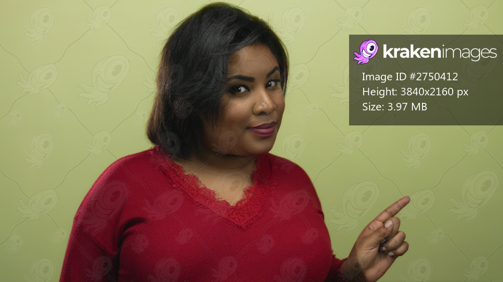 Woman in red sweater gestures thoughtfully against a yellow background, embodying style with a focus on plus size fashion and confidence.