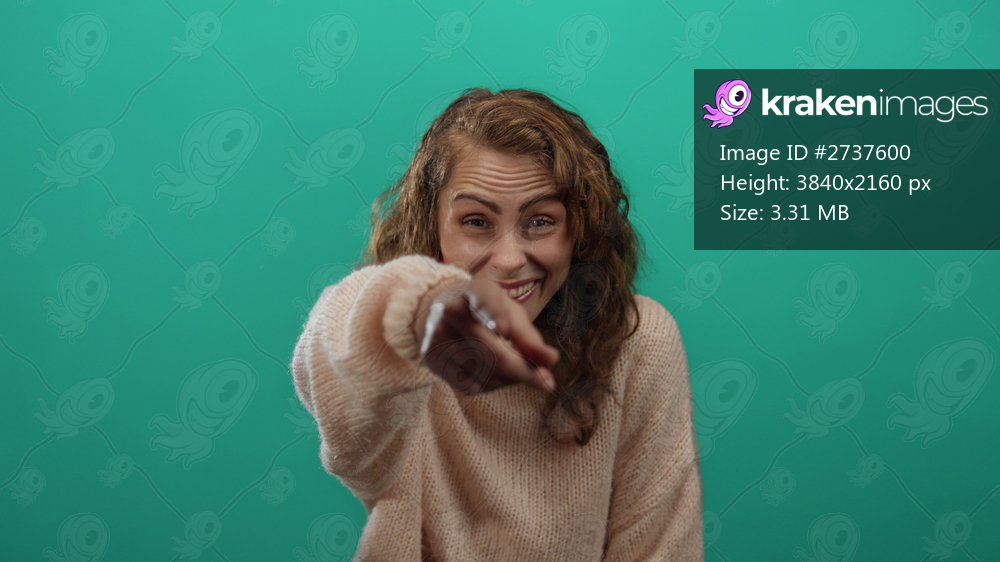 Woman laughing joyfully in front of an isolated green background, wearing a cozy sweater, expressing happiness and carefree emotion, captured in a candid mid-laugh moment. - Kraken Images