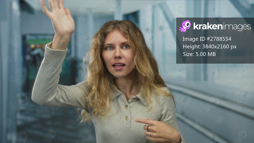 Woman lifts hand waving inside airport as blonde young figure worried calling out across a terminal hallway.