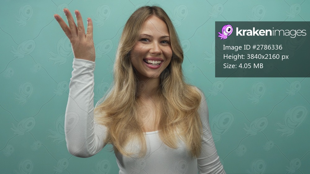 Woman with long blonde hair and closed eyes blowing kiss with puckered lips in photo studio scene captured; affection playfulness.