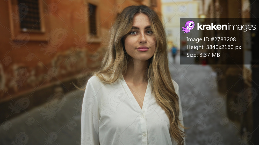 Woman with long blonde hair glances over shoulder in a narrow italian alley; introspection wanderlust serenity.