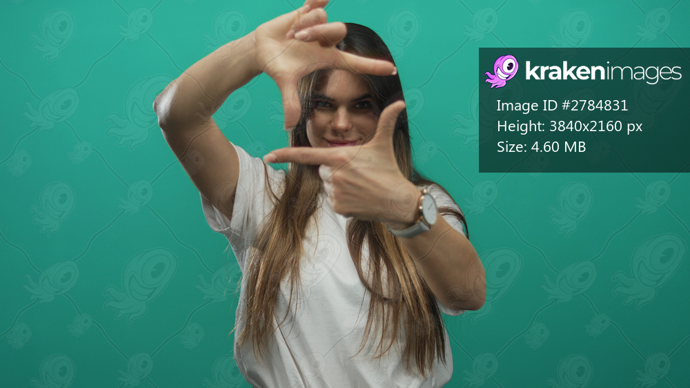 Woman making a frame gesture with her hands, isolated against a vibrant green background, showcasing creativity and focus in a modern and expressive setting. - Kraken Images