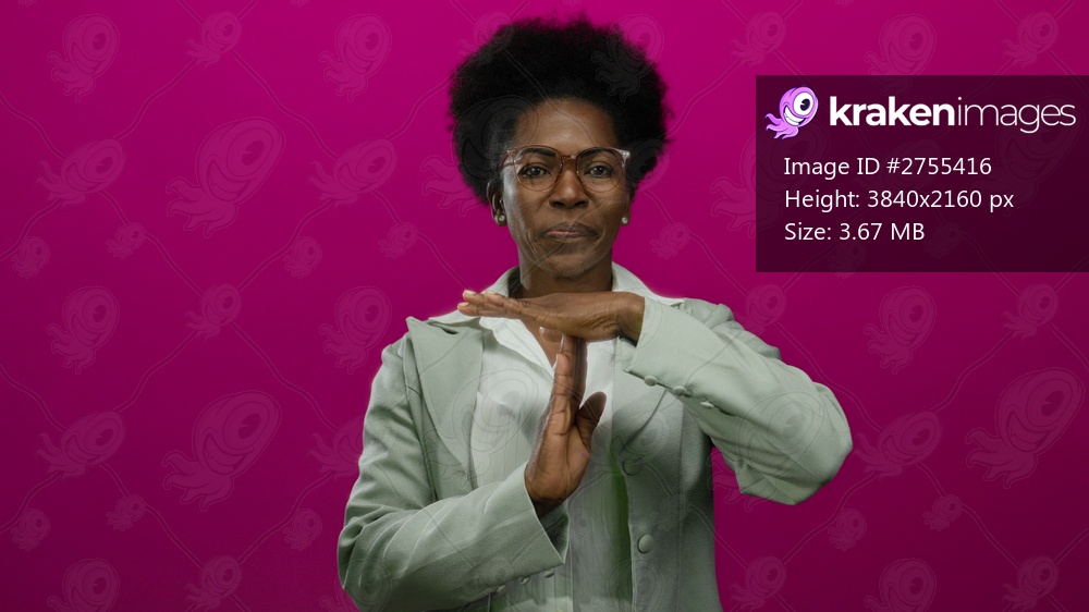 Woman making time-out gesture over isolated pink background wearing glasses and green jacket implying break, pause, or rest.