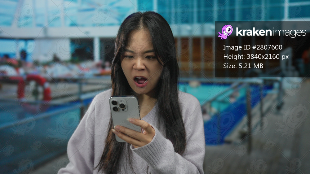 Woman on cruise holding smartphone with frustrated expression outdoors on a boat surrounded by seaside view shows young asian female experiencing emotions. - Kraken Images