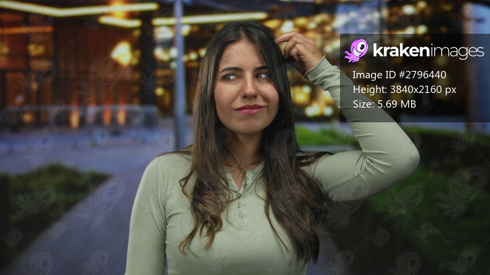 Woman on street posing at night in urban setting, exuding confidence and energy with vibrant surroundings conveying a lively city atmosphere outdoors.