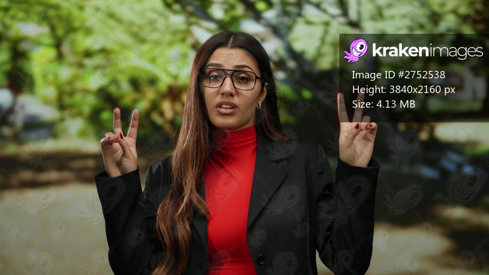 Woman outdoors wearing glasses and red top in a park setting during daytime