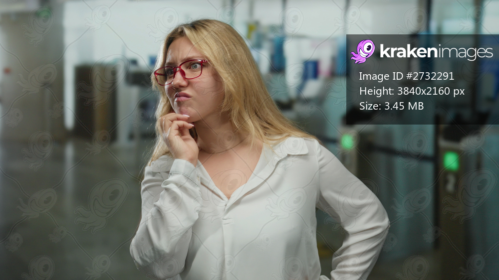 Woman pondering in an airport terminal, wearing glasses, with a thoughtful expression in a spacious indoor setting, capturing a moment of travel contemplation. - Kraken Images