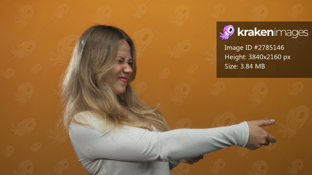 Woman pulling rope with both hands in photo studio with focused expression and firm posture; effort determination.