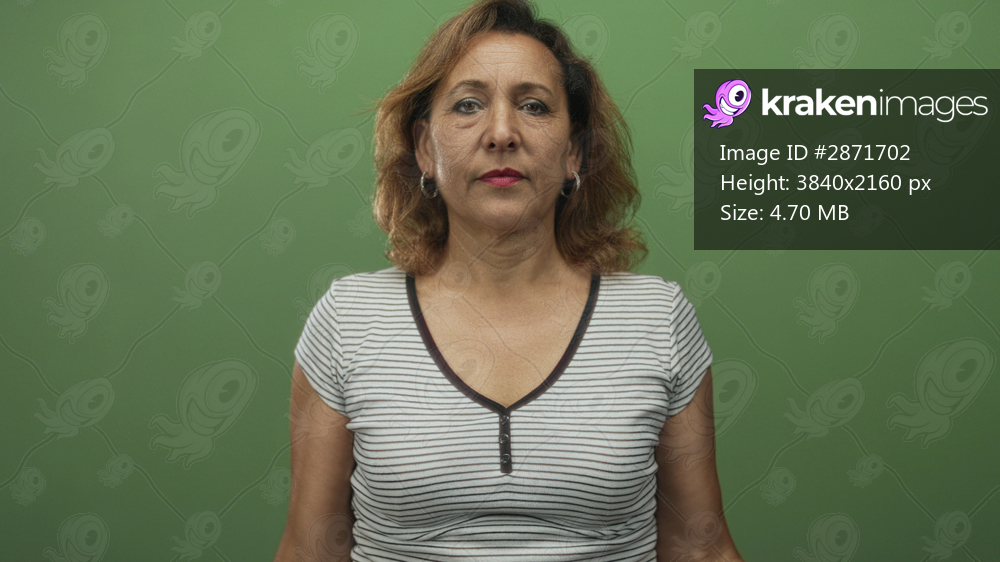 Woman raising both hands with open palms in green studio while closing eyes in calm pose; serenity mindfulness balance calm.