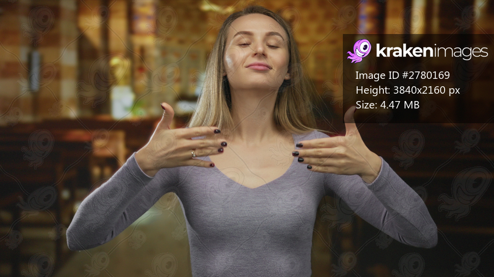 Woman relaxing indoors at church with hands raised, showcasing serenity and spirituality in a peaceful setting with warm lighting, expressing calm and tranquility. - Kraken Images