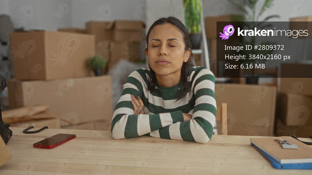 Woman seated indoors looks at phone appearing upset in a new home surrounded by cardboard boxes and plants, indicating a recent move and unsettled feelings. - Kraken Images