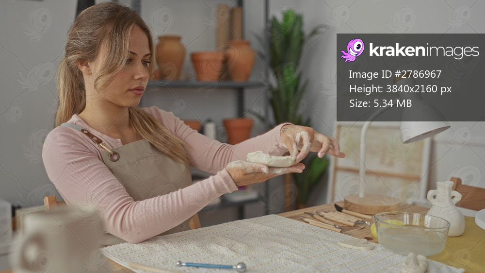 Woman shapes small wet clay vessel with bare hands in studio; creativity focus mindfulness craftsmanship.