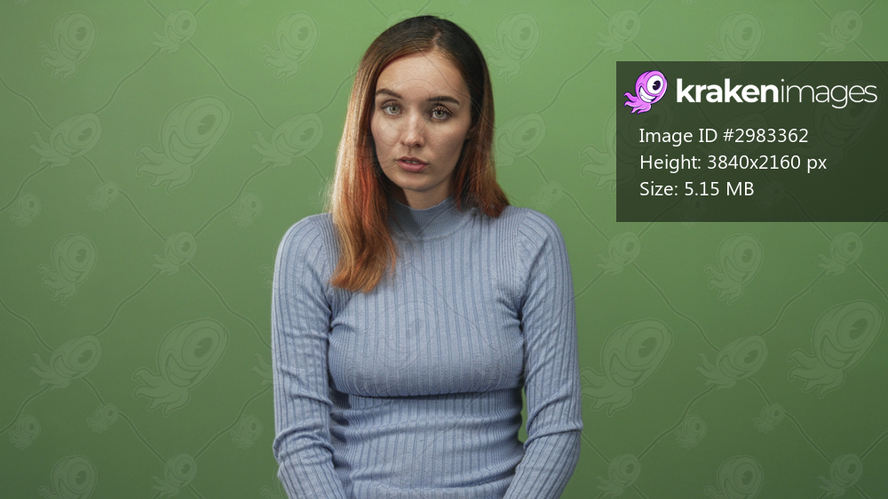 Woman sitting with closed eyes and downcast gaze in a studio setting, wearing a turtleneck sweater; contemplation solitude.