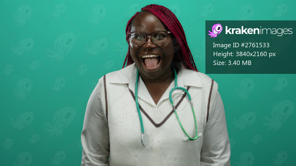 Woman smiling confidently against green background wearing stethoscope, conveying a sense of professionalism and warmth in an isolated setting.