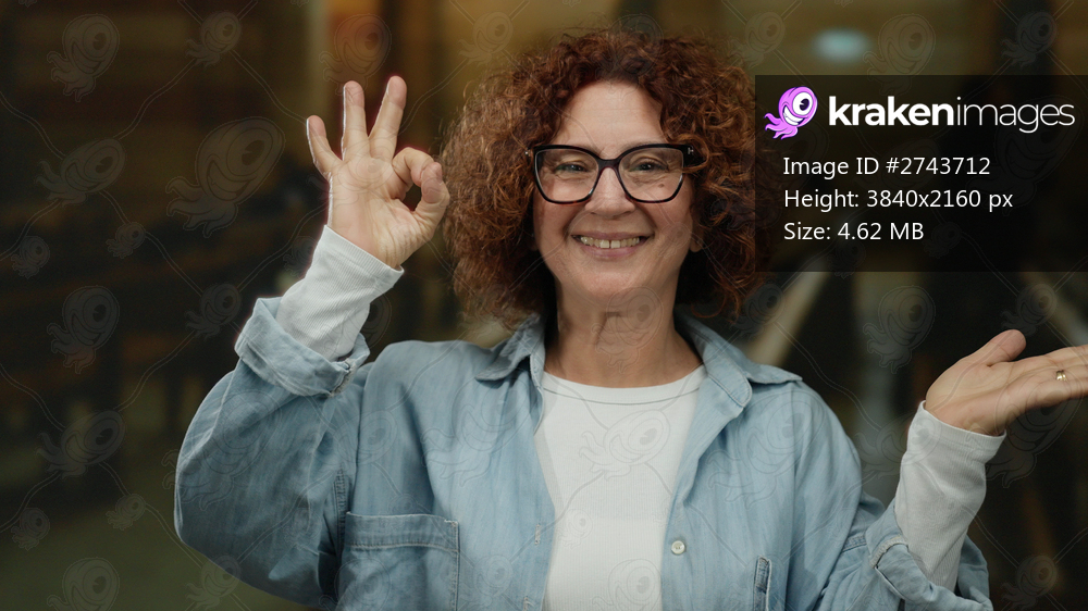 Woman smiling and gesturing ok sign indoors with casual outfit in church background, displaying confidence and positivity in an indoor religious setting. - Kraken Images