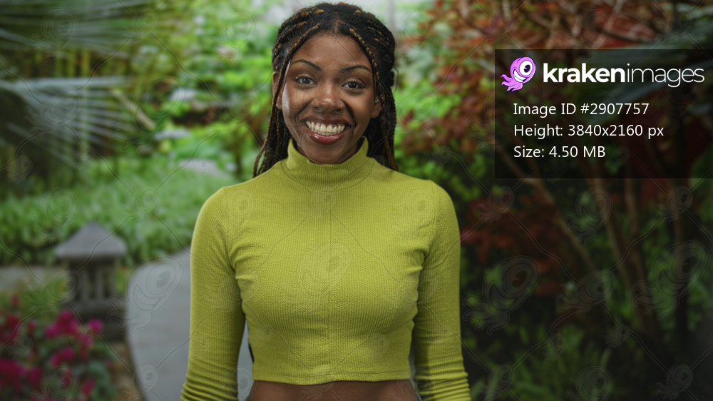 Woman smiling with hands covering eyes in forest wearing green crop top and turtleneck, facing camera; playful confidence.
