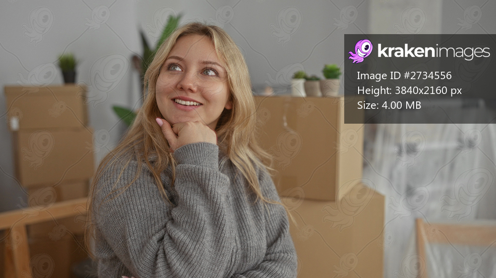Woman smiling in a new home surrounded by moving boxes in a living room setting, embodying excitement and hope for a fresh start.