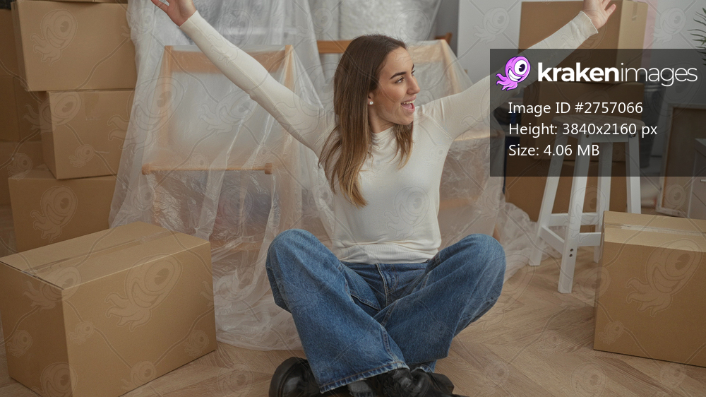 Woman smiling in new home surrounded by moving boxes while sitting on the floor indicating a transition into a fresh start in a cozy indoor setting.