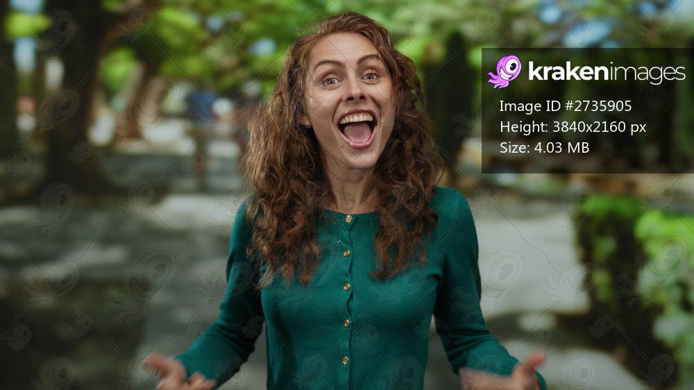 Woman smiling in park with curly hair giving thumbs up in casual green sweater, expressing happiness outdoors under sunlit trees in natural outdoor setting. - Kraken Images