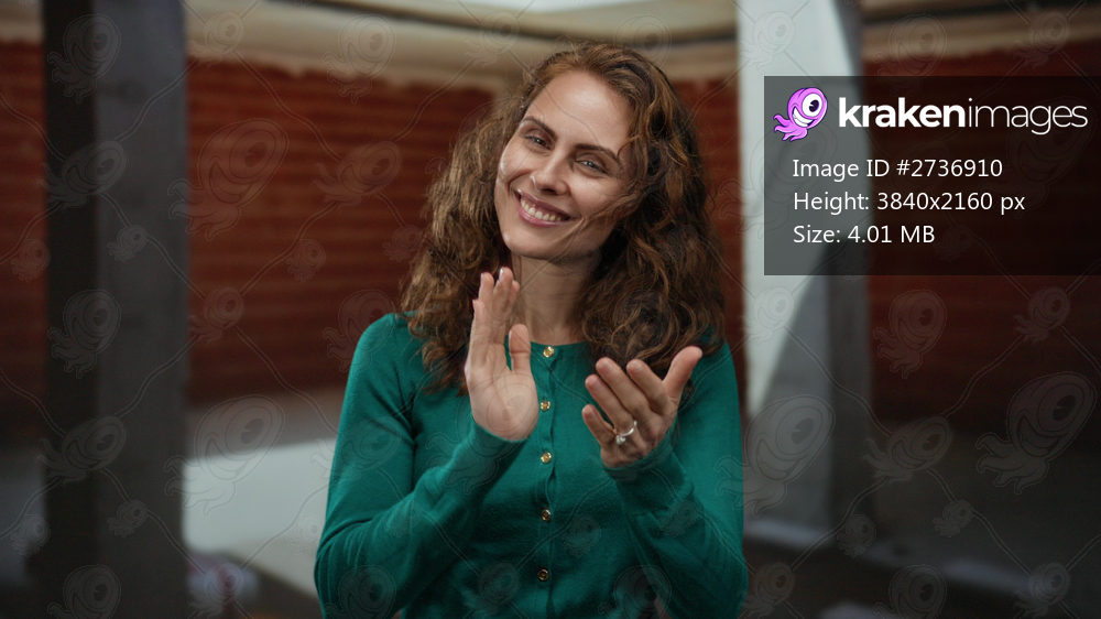 Woman smiling indoors at a construction site, exuding happiness and wearing a green sweater, showcasing youthful energy and positivity in a raw industrial setting. - Kraken Images