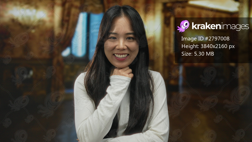 Woman smiling indoors in a hotel setting with elegant decor and warm lighting, showcasing a relaxed ambiance and friendly expression, ideal for hospitality and lifestyle themes. - Kraken Images