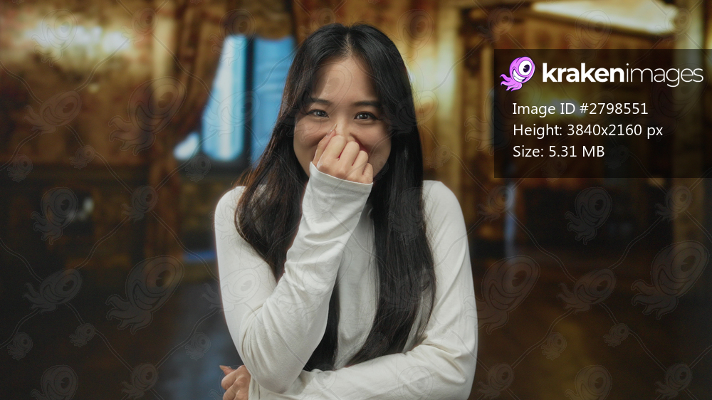 Woman smiling indoors in a hotel setting with elegant decor and warm lighting, showcasing a relaxed ambiance and friendly expression, ideal for hospitality and lifestyle themes. - Kraken Images