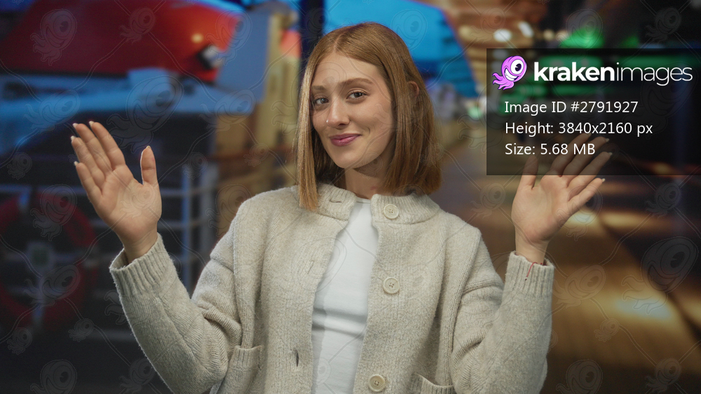 Woman smiling on a boat with blonde hair enjoying seaside outdoors with a joyful expression surrounded by vibrant colors under a clear sky.
