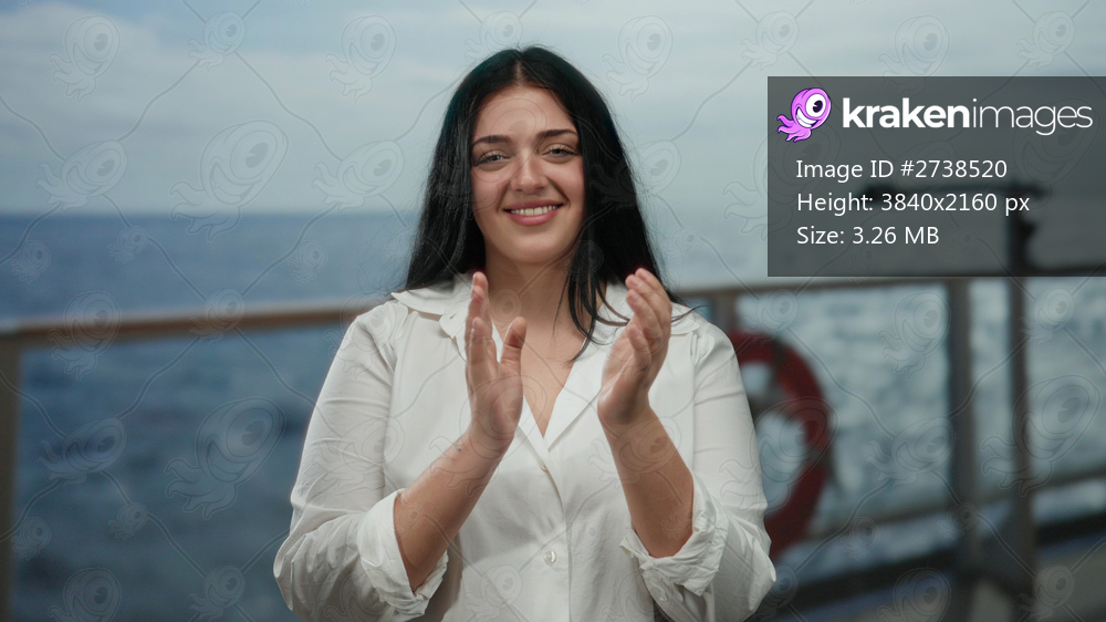 Woman smiling on cruise ship deck with ocean view highlighting joy casual fashion plus size confidence travel reflection