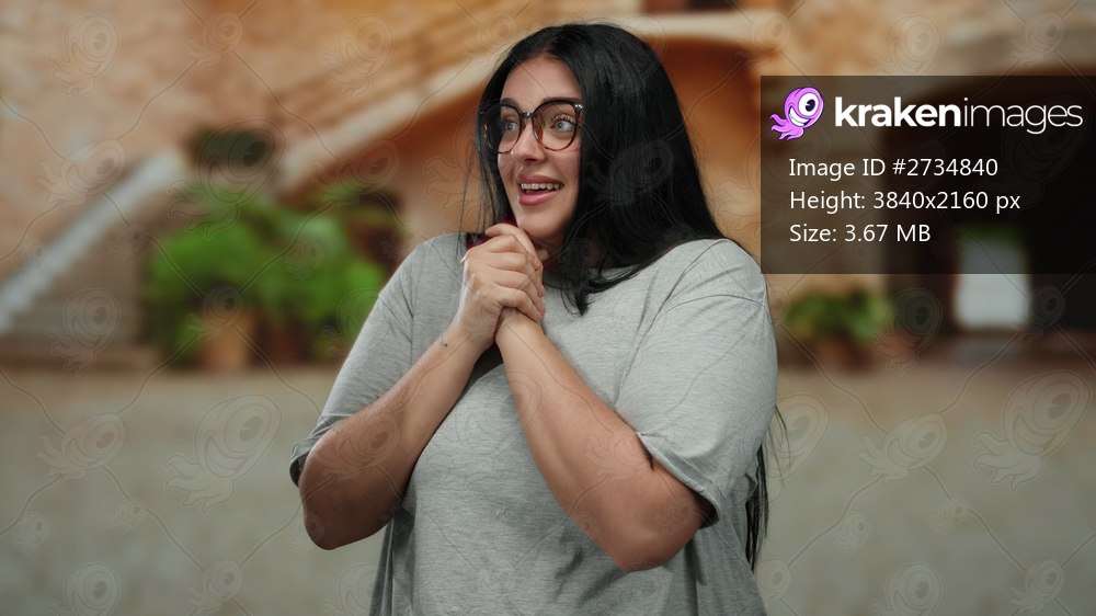 Woman smiling outdoors in a city street setting showcases happiness and confidence with casual attire and glasses enhancing a charming plus size style with curvy elegance. - Kraken Images