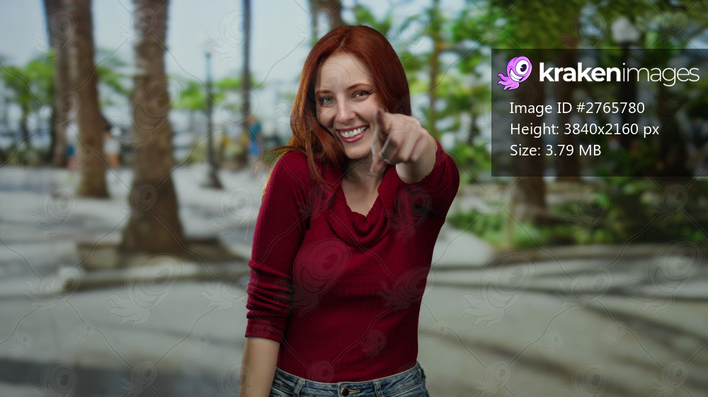 Woman smiling outdoors in a city street setting, wearing red, showing happiness and confidence, surrounded by trees, embodying beauty and charm.