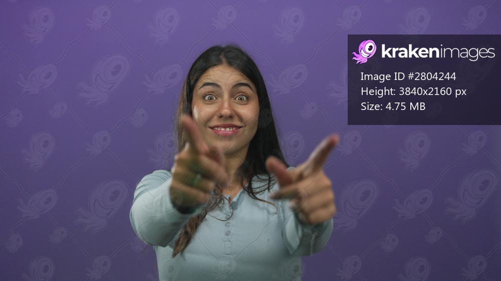 Woman smiling with outstretched hands over isolated purple background wearing blue sweater expressing happiness and welcome gesture with friendly hispanic features. - Kraken Images