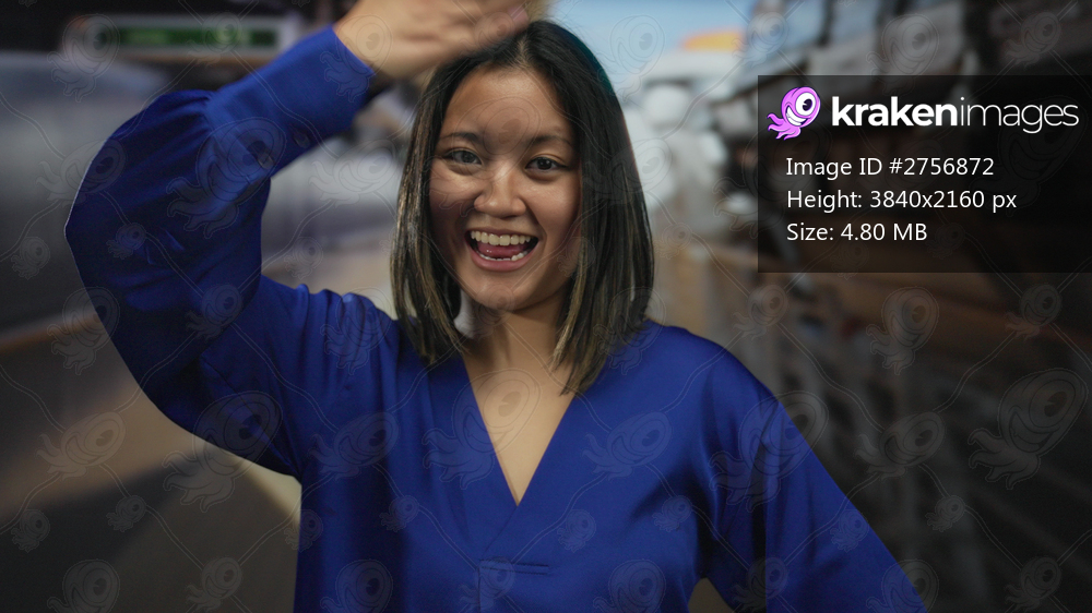 Woman smiling and playfully covering her eyes while enjoying a relaxing moment on a cruise deck, wearing a vibrant blue blouse against a nautical backdrop. - Kraken Images