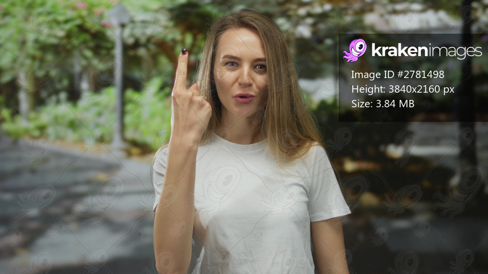 Woman smiling playfully in a lush green outdoor park setting, surrounded by leafy trees and pathways, conveying a sense of joy and relaxation in nature. - Kraken Images