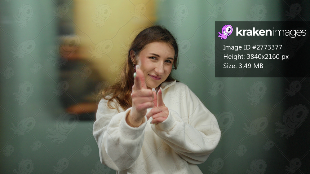 Woman smiling and pointing in a lively train station showcasing joyful interaction and capturing candid moments in a bustling indoor railway environment. - Kraken Images