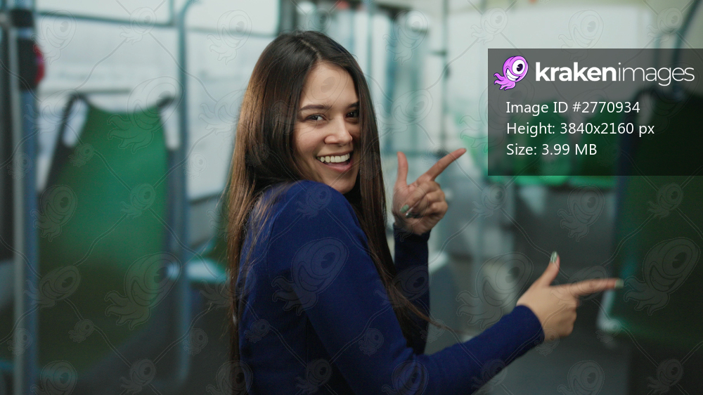 Woman smiling and pointing indoors on a bus suggesting direction with vibrant energy and joy.