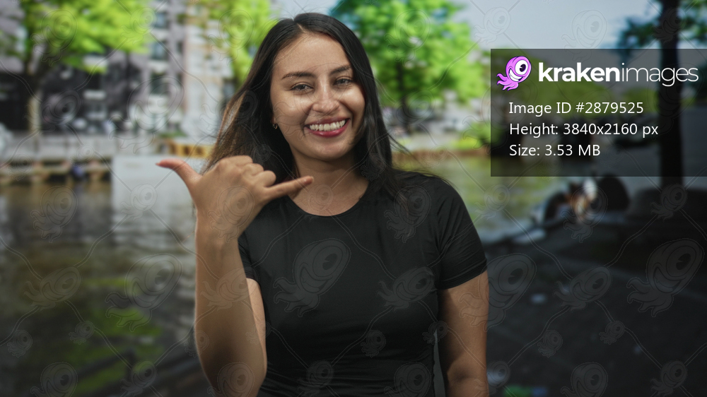 Woman smiling and showing shaka hand gesture with raised thumb and pinky on canal street in amsterdam; joy travel fun.