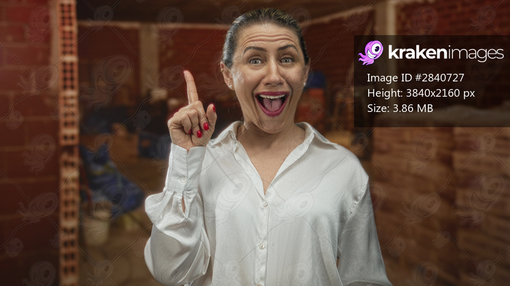Woman smiling shows thumbs up gesture with bare thumb in building interior wearing white shirt; confidence.
