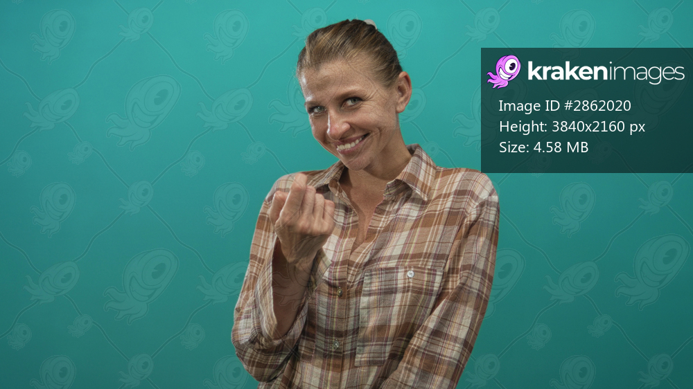 Woman smiling with tilted head and visible face in studio against teal backdrop; friendly warmth approachability.