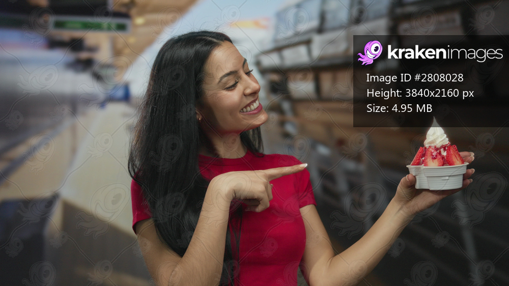 Woman smiling while holding ice cream on cruise ship outdoor deck enjoying seaside view.