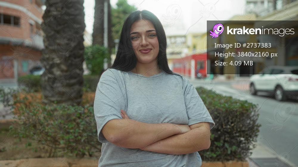 Woman standing confidently with arms crossed on a bustling city street shows plus size fashion in an urban setting, highlighting modern diversity and empowerment. - Kraken Images