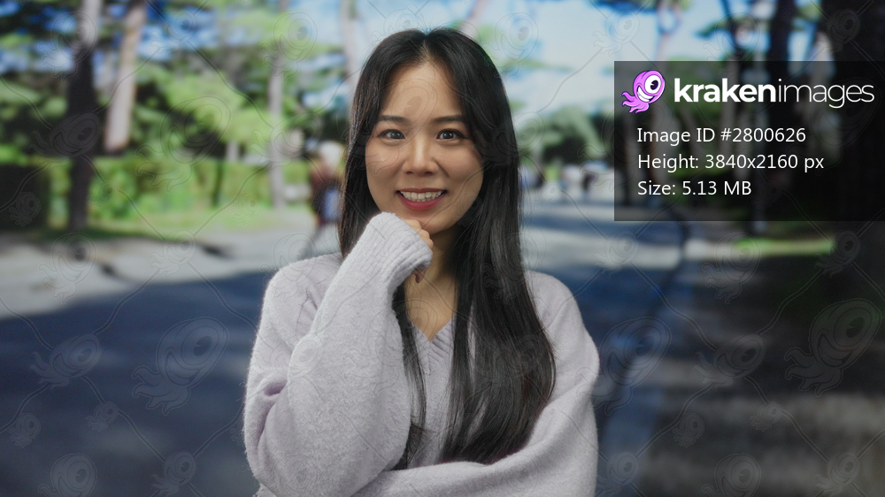 Woman standing confidently on a sunlit street, embodying casual elegance with long hair and a gentle smile on her face, surrounded by a peaceful outdoor setting. - Kraken Images