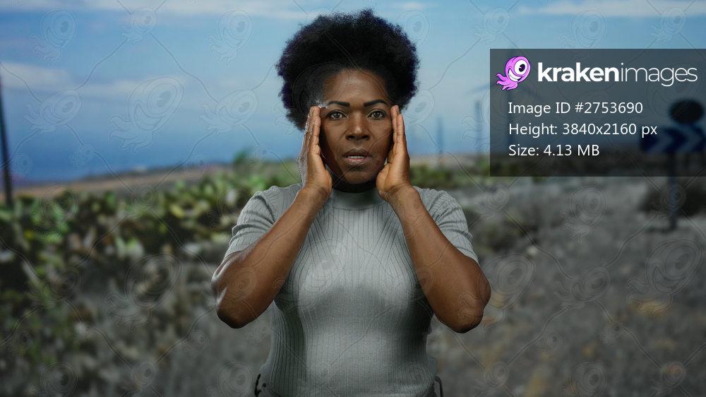 Woman standing in outdoor field with windmills in the background, focused on sustainable energy, reflecting a sense of mindfulness and environmental consciousness. - Kraken Images