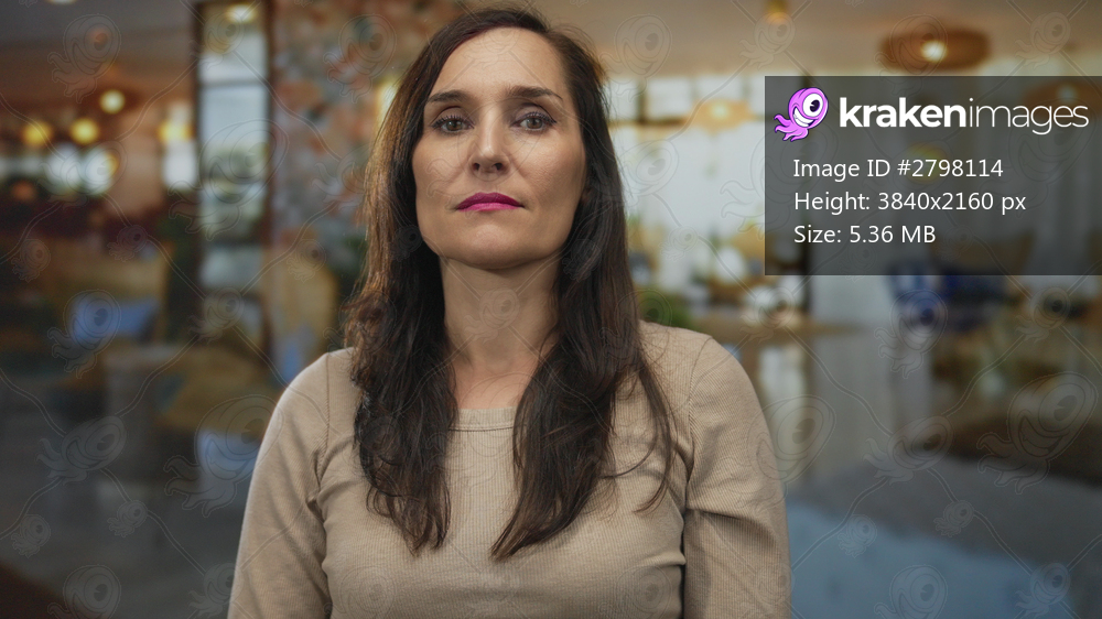 Woman standing indoors with confident expression in softly lit setting, blending into the inviting indoor light and decor, capturing a relaxed indoor ambiance. - Kraken Images