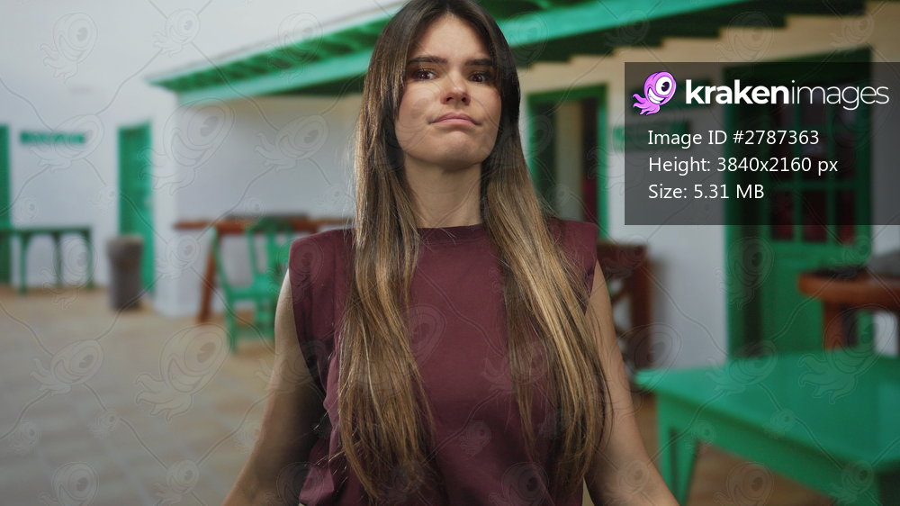 Woman standing on a city street, showcasing a confident pose with her long hair flowing, surrounded by vibrant green urban architecture that accentuates her modern style - Kraken Images
