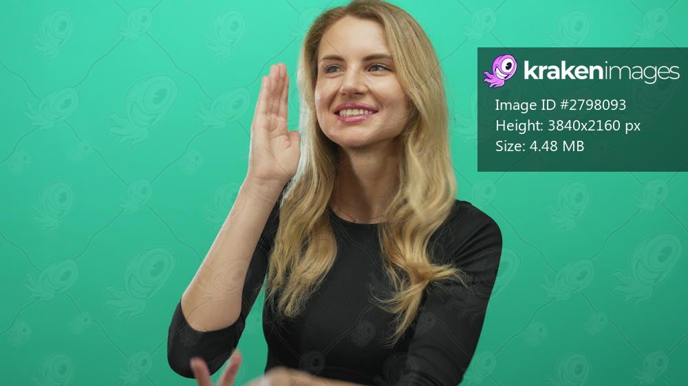 Woman talking with a vibrant green background expressing emotion and attention, conveying communication and engagement vividly.