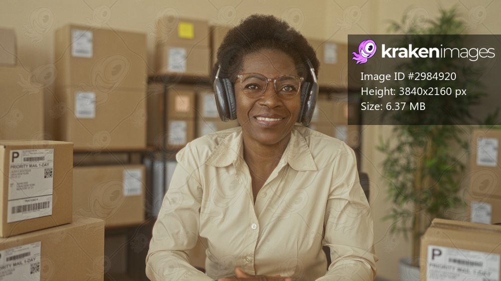 Woman talking with mouth open while packing boxes in a building; entrepreneurship business determination growth.